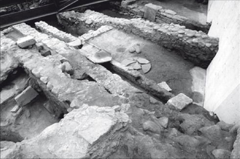 La storia di questo luogo non finisce con Roma. In epoca tardo-antica e altomedievale, l'area, ormai in abbandono, fu riutilizzata. Quelle semplici fosse che si vedono negli angoli sono sepolture che insistono direttamente sui crolli romani. Vi furono sepolti un uomo, con un frammento di legno nella mano destra, e una donna, che portava ancora i suoi semplici orecchini a cerchietto di bronzo. È un segno potente: la vita continua, anche su ciò che è crollato. L'antica dimora di un ricco mercante divenne un quieto luogo di riposo per i suoi posteri.