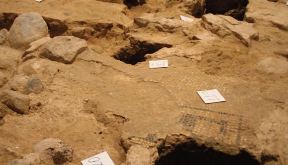 Il ritrovamento più importante è stato un lacerto di mosaico pavimentale a scacchiera bianca e nera, affiancato da due canalette per l'acqua (afflusso e deflusso). Questi elementi sono stati interpretati come un fonte battesimale paleocristiano.