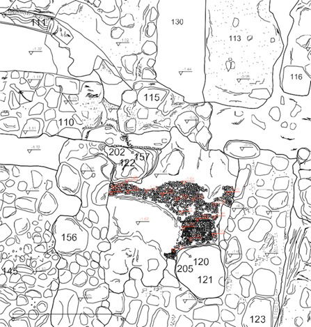 Accanto al mosaico, è stata trovata una buca contenente oggetti liturgici dismessi con rispetto rituale: