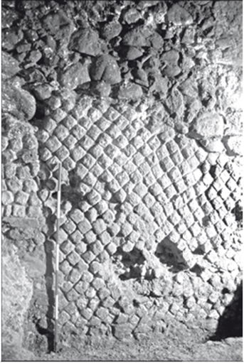 Guardate qui, nelle fondamenta del palazzo. Questi muri con la perfetta rete di blocchi di tufo (opus reticulatum) non sono del '400. Sono le pareti originali dello stabilimento termale romano, così solide che gli architetti rinascimentali ci costruirono sopra, risparmiandosi la fatica! In alcuni punti, l'alzato antico è alto oltre due metri: sono secoli che reggono il peso di altri secoli.